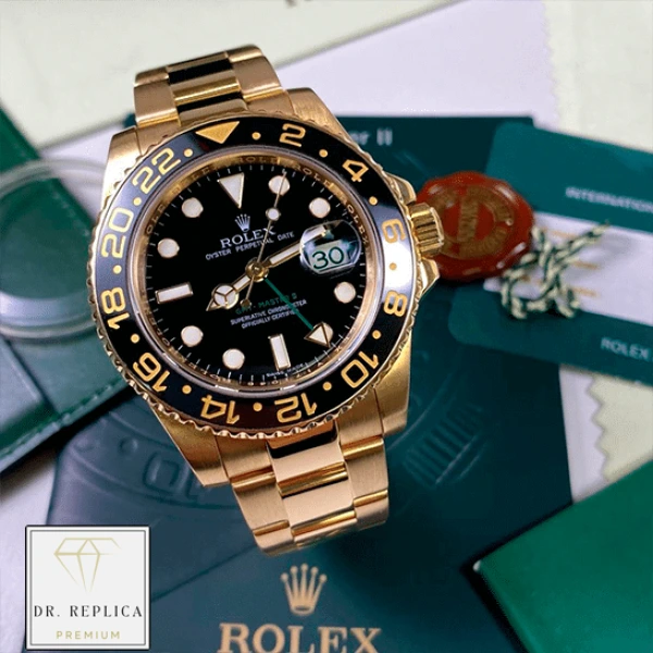 Rolex GMT Master Black and Gold Dial Replica – Swiss Precision Meets Timeless Elegance