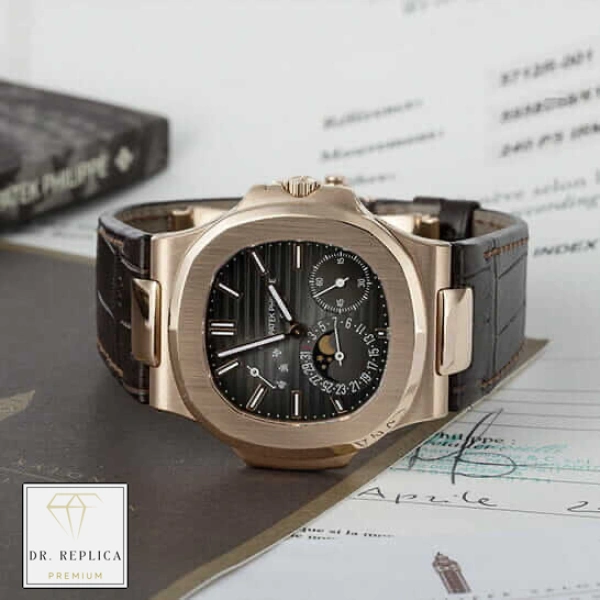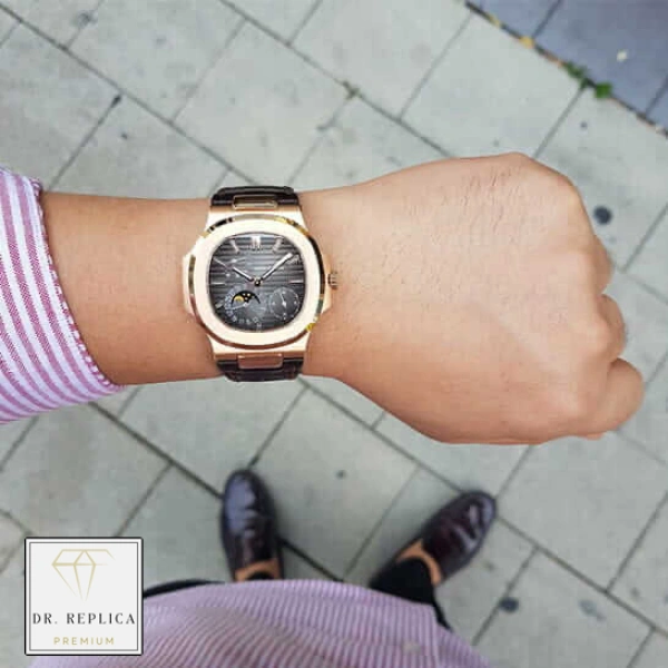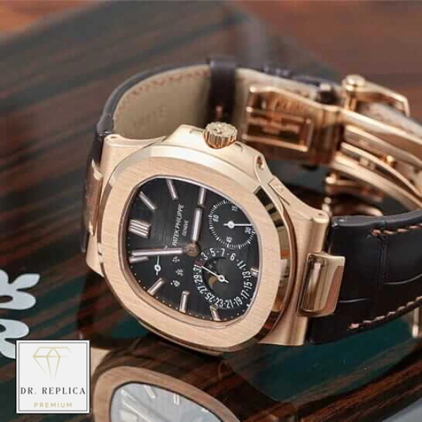 Experience the Patek Philippe Nautilus Black Dial – a sophisticated timepiece crafted from premium 904L Stainless Steel and Gold Plated steel with a Brown, Rose Gold bezel. Available in both 40MM case sizes, it features a sapphire crystal and a Black dial with Stick / Dot and sharp steel hands.