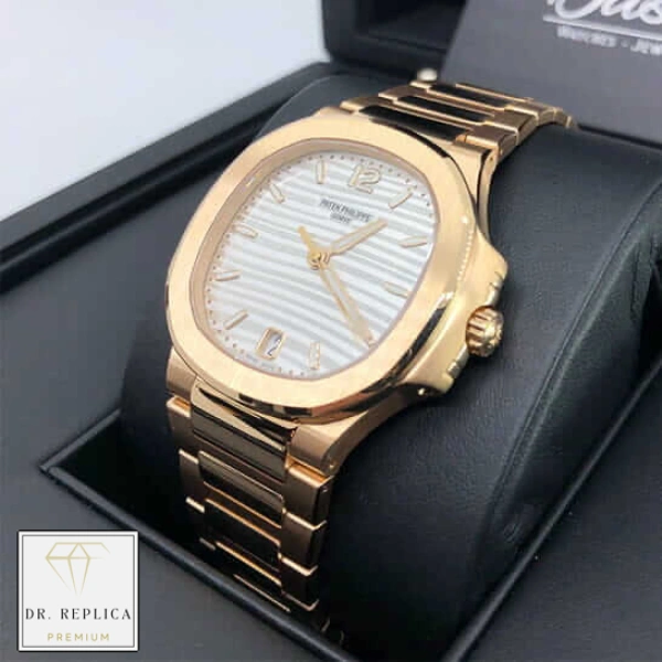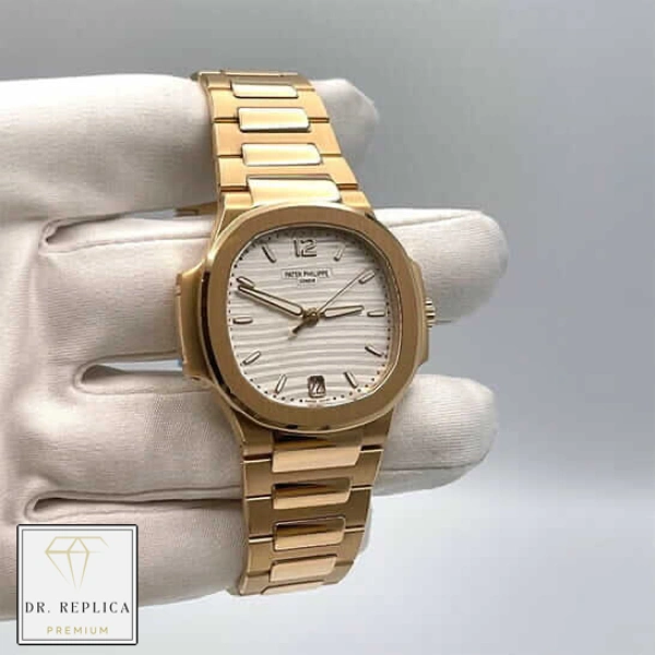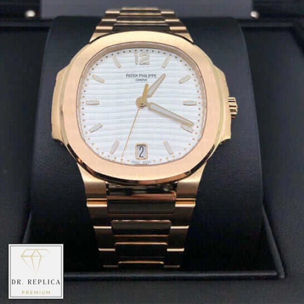 Experience the Patek Philippe Nautilus White Dial – a sophisticated timepiece crafted from premium 904L Stainless Steel and Gold Plated steel with a Rose Gold bezel. Available in both 35.2MM case sizes, it features a sapphire crystal and a White dial with Stick / Dot and sharp steel hands.