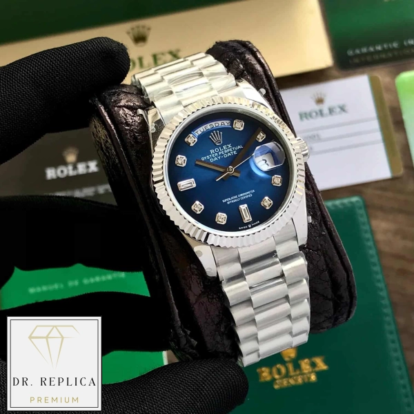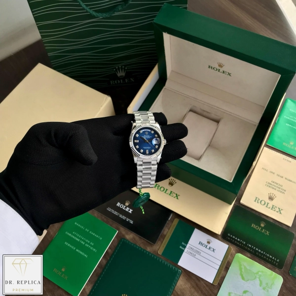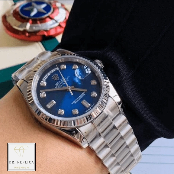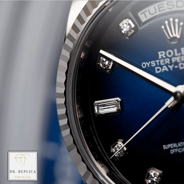 Rolex Day Date Diamond and Blue Ombre Dial Replica – Swiss Precision Meets Timeless Elegance