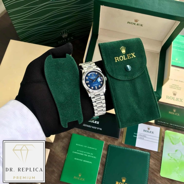 Powered by a Swiss-grade automatic movement (Caliber 3235), this replica delivers COSC-level accuracy of -3/+3 seconds per day and an extended 60-hour power reserve. The watch is paired with your choice of Jubilee or Oyster bracelet, both fully adjustable for comfort and style.
