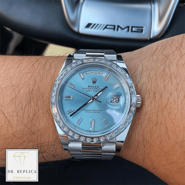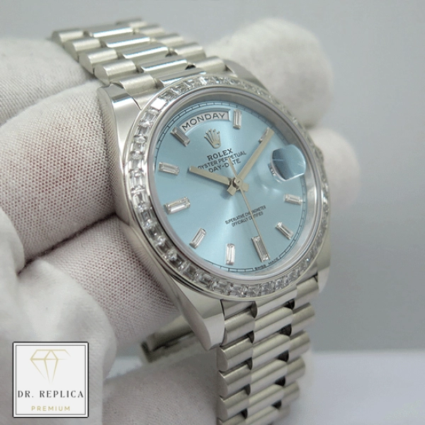 Rolex Day Date Ice Blue and Diamond Dial Replica – Swiss Precision Meets Timeless Elegance