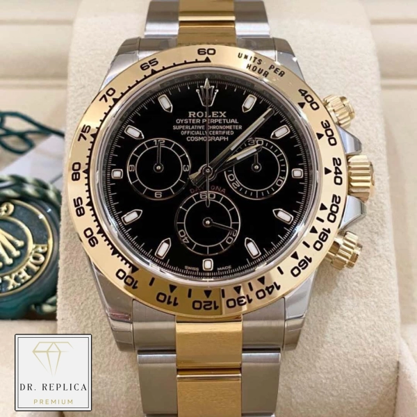 Rolex Daytona Black and Gold Dial Replica – Swiss Precision Meets Timeless Elegance